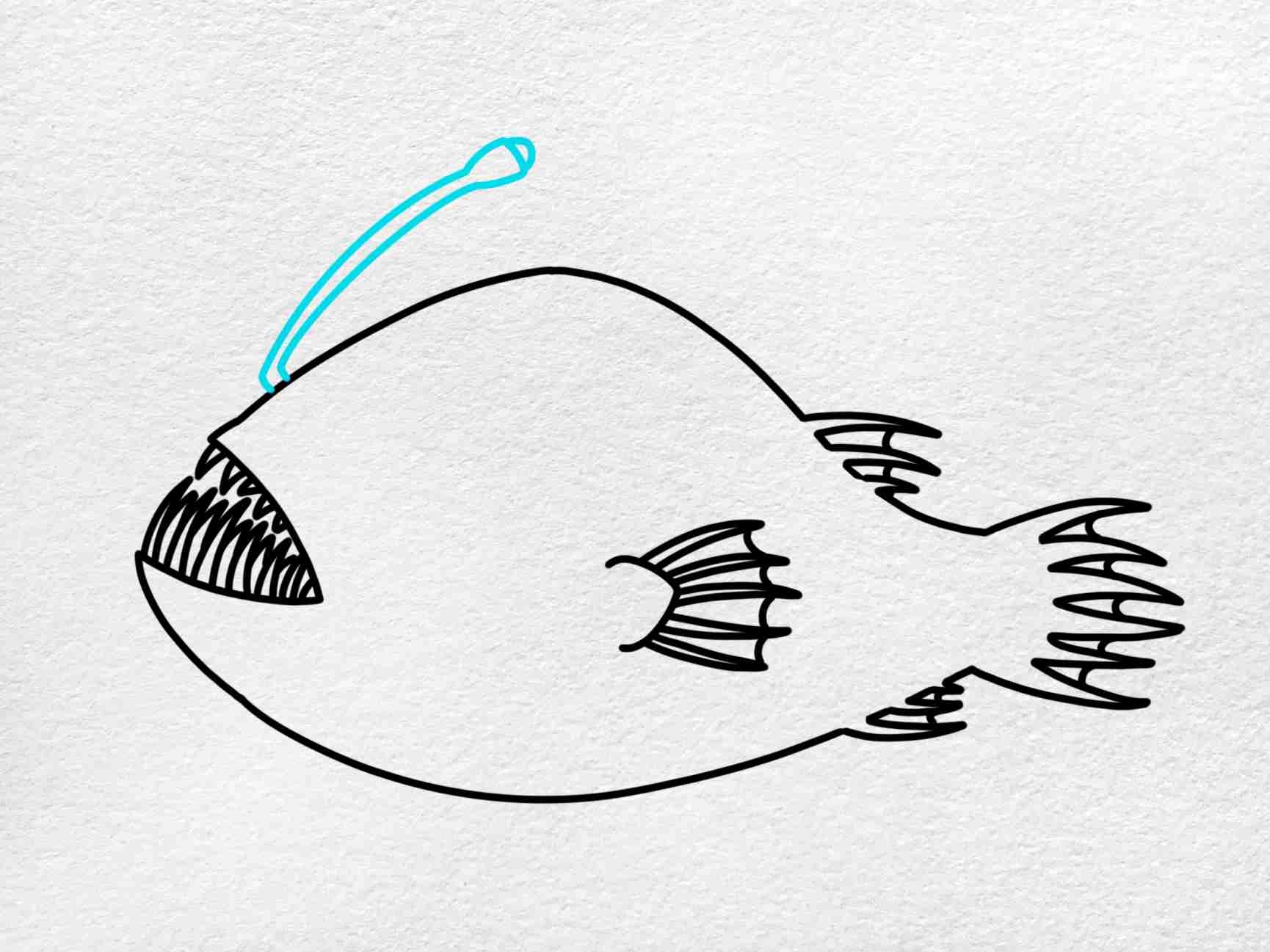 Once you have the basic outline in place, you can start adding details such as the fish’s fins, scales, and bioluminescent lure. Take your time to carefully shade and texture these elements, using a variety of drawing tools such as pencils, pens, and markers to achieve the desired effect. Pay special attention to the glowing lure, as this is a key feature of the angler fish’s appearance.