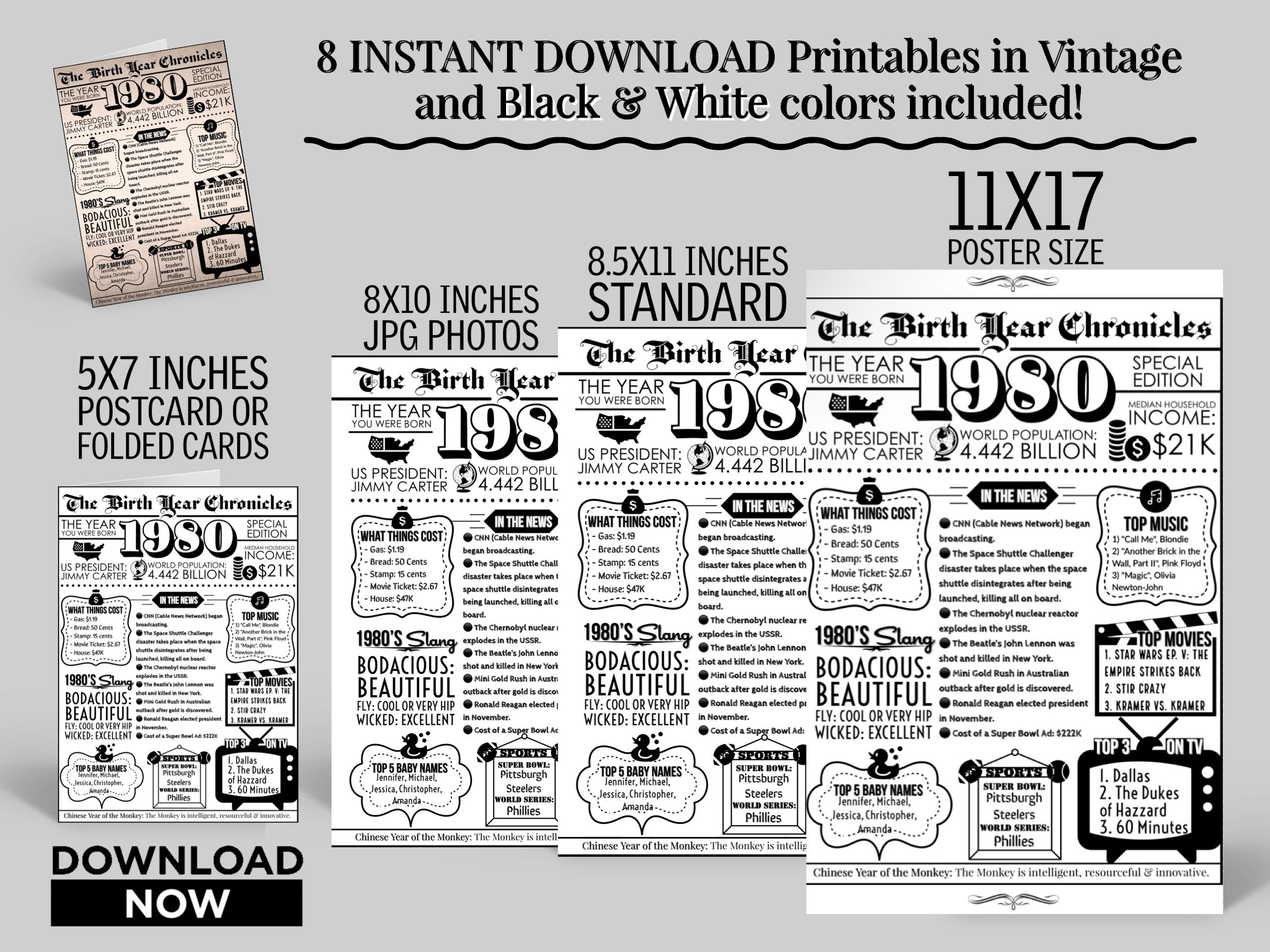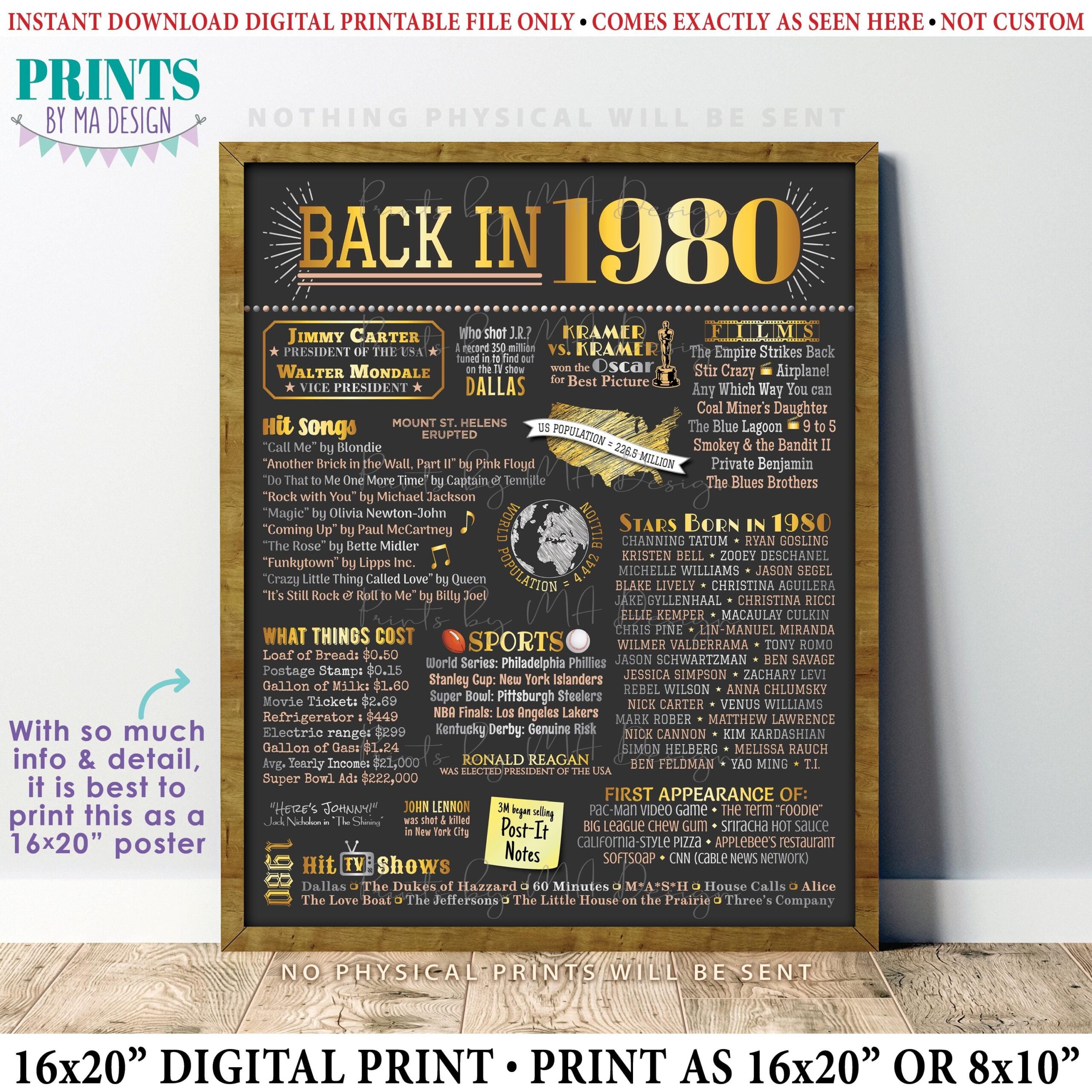1980 45th Birthday Back In 1980 Last Minute Gift Fun Facts 1980 45th Birthday PRINTABLE Poster Sign For USA Canada Australia UK Etsy