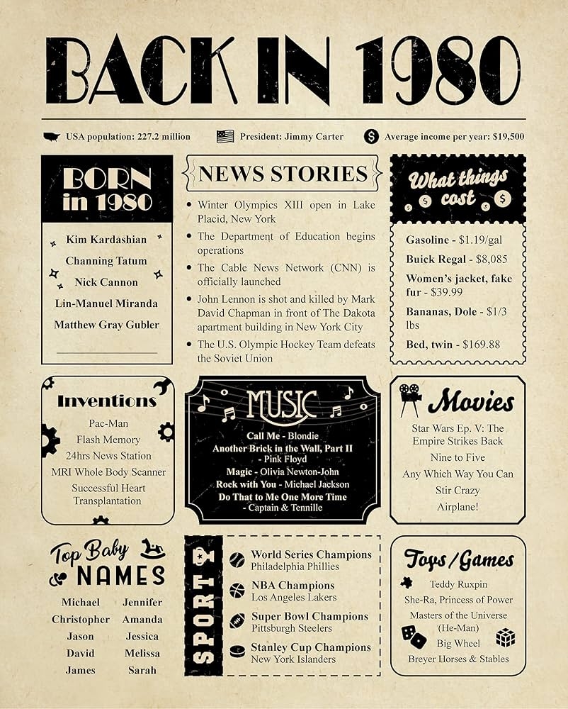Back In 1980 Poster Board Flashback To 1980 Remember The Year 1980 USA History From 1980 PRINTABLE 16x20 Sign
