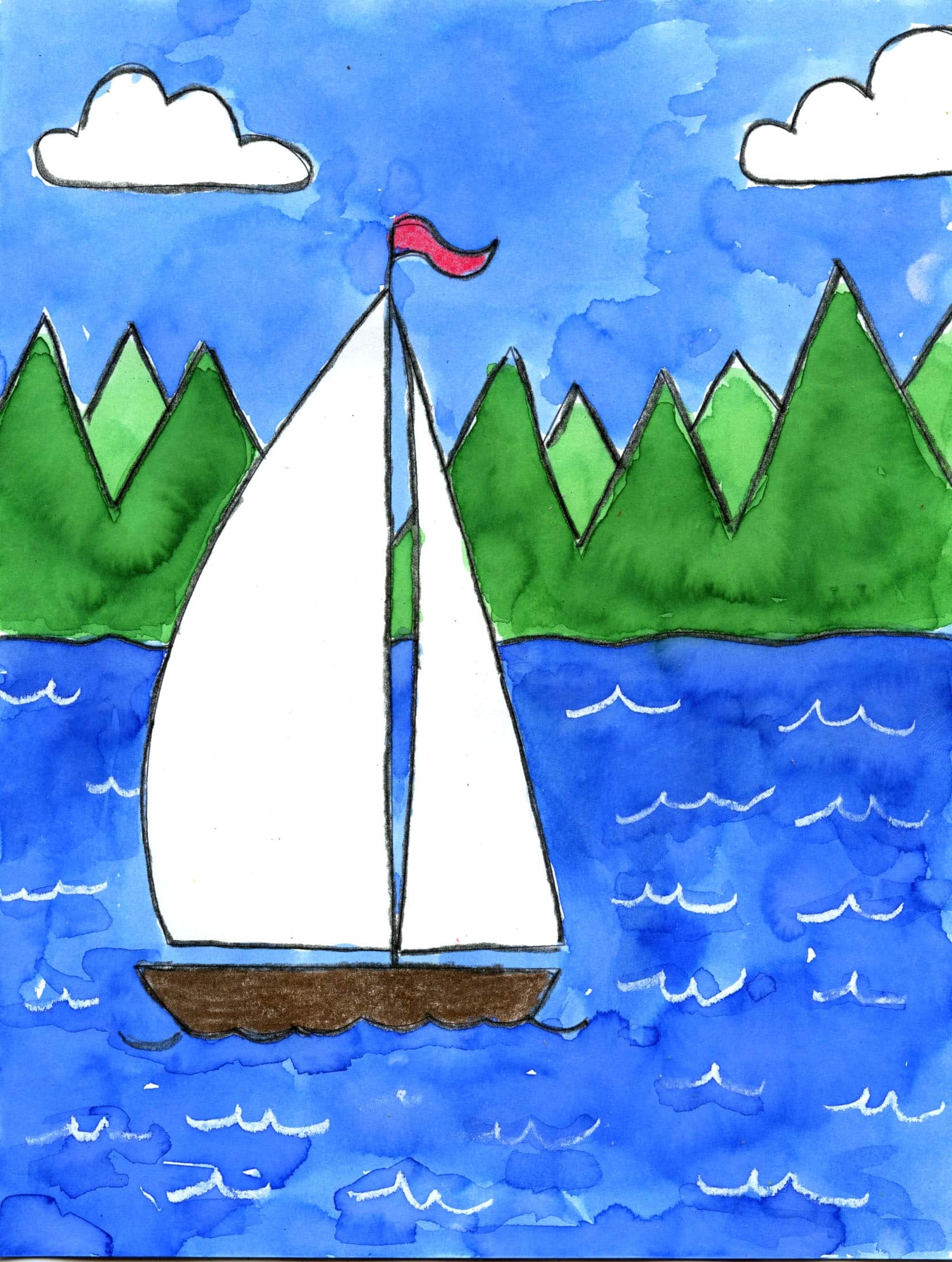 How To Draw A Sailboat Easy Step by Step Art Lesson For Kids