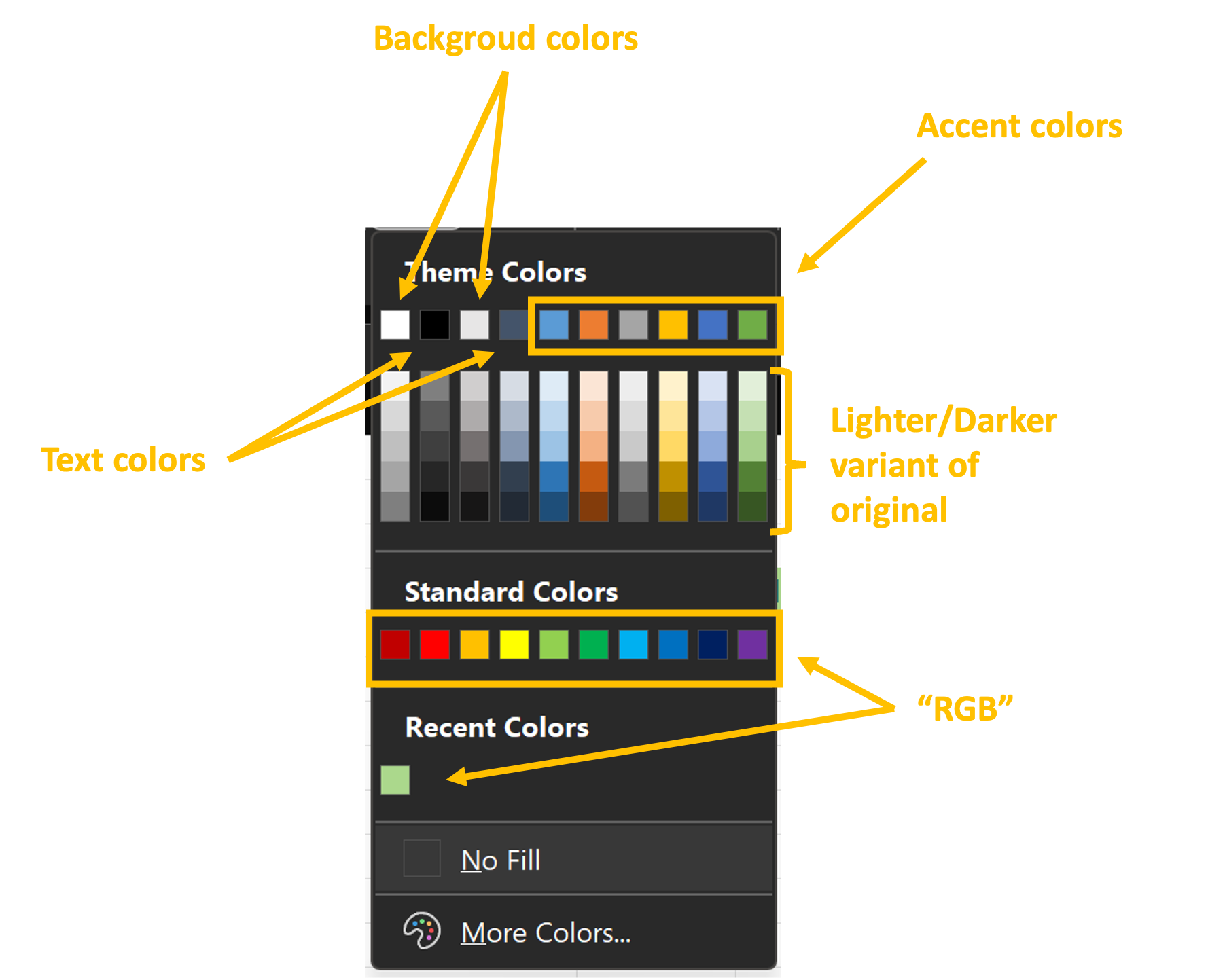 Cell fills color chart is a visual representation of different colors that can be used to fill cells in a spreadsheet. This chart is commonly used in programs like Microsoft Excel or Google Sheets to make data more visually appealing and easier to read.