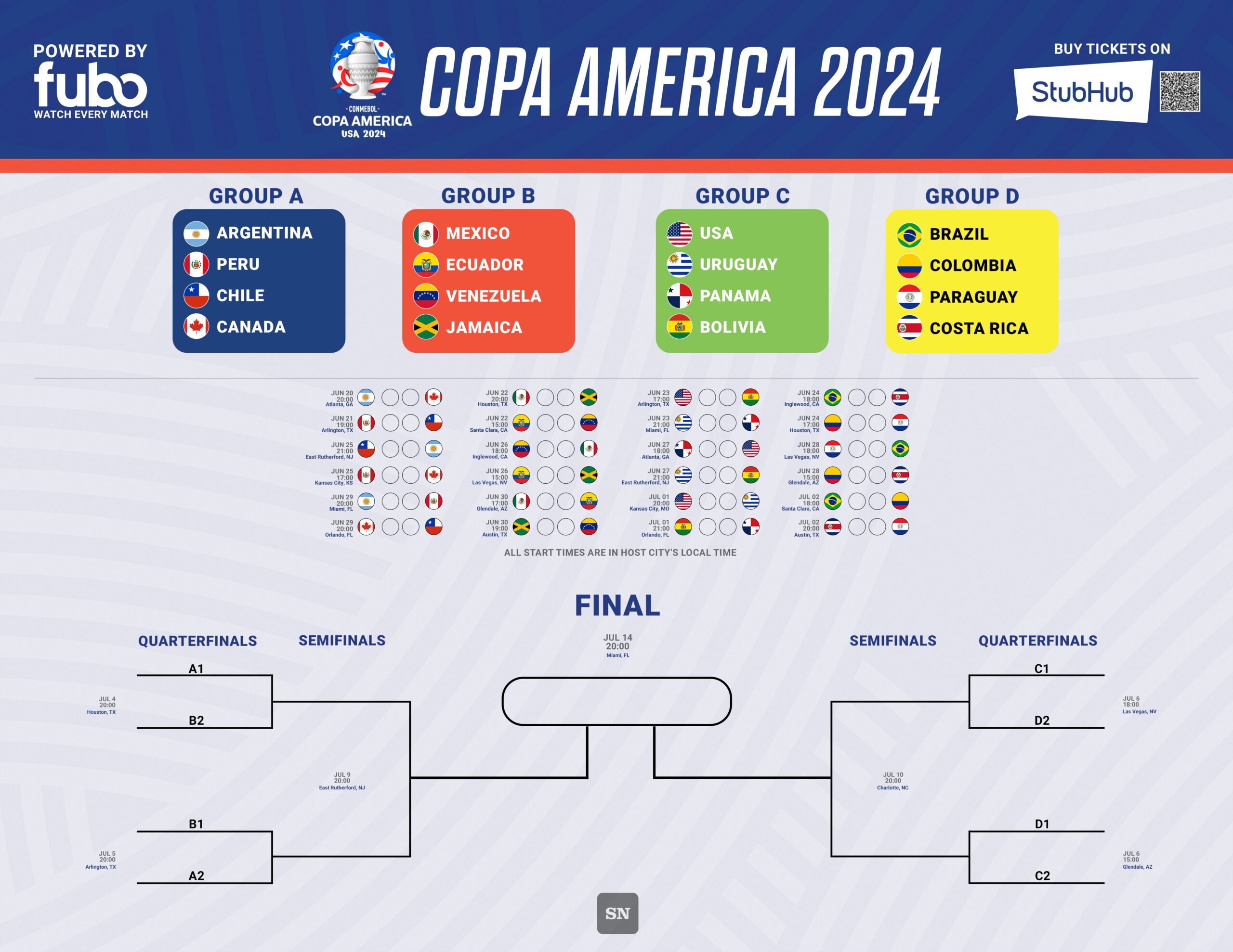 Get ready for an action-packed tournament as the Copa America 2024 kicks off with the group stage matches. Stay tuned for updates, results, and highlights as the best teams in South America battle it out for supremacy in this prestigious competition.
