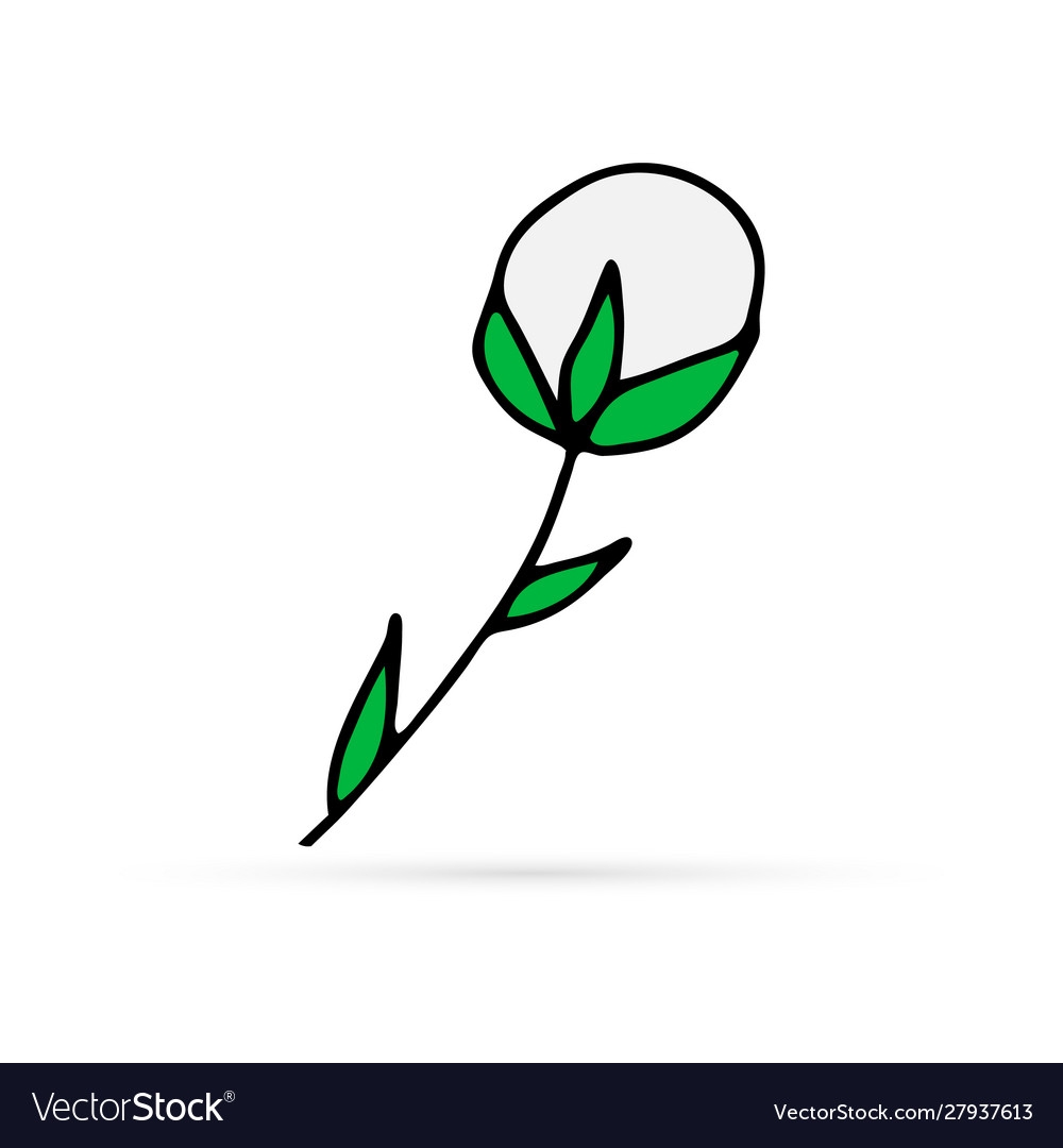 Doodle Flower Cotton Icon Kids Hand Drawing Line Vector Image