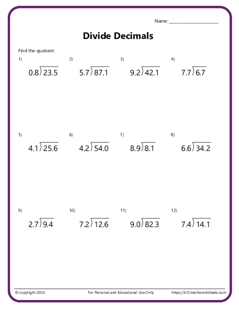 Furthermore, decimal math sheets can be a useful tool for teachers to assess student progress and identify areas where additional support may be needed. By reviewing the completed worksheets, teachers can pinpoint specific skills that students are struggling with and provide targeted instruction to address these challenges. This targeted support can help students overcome obstacles and make progress in their decimal math skills.