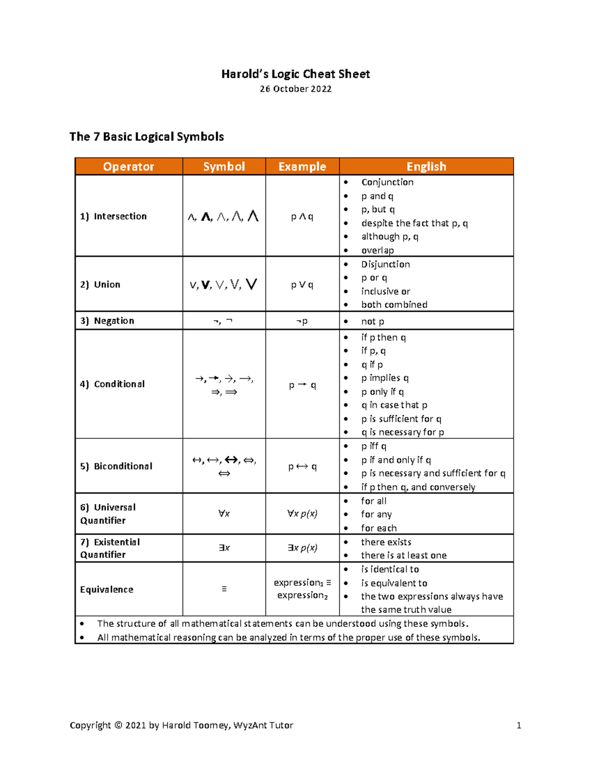 MAT 1348 Logical Connectives Cheat Sheet For Students Studocu