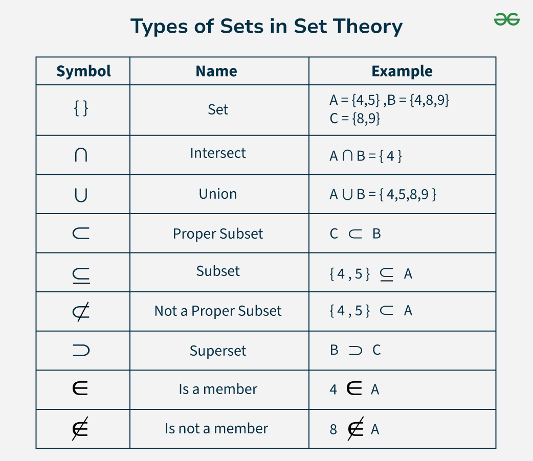 Types Of Sets In Set Theory GeeksforGeeks