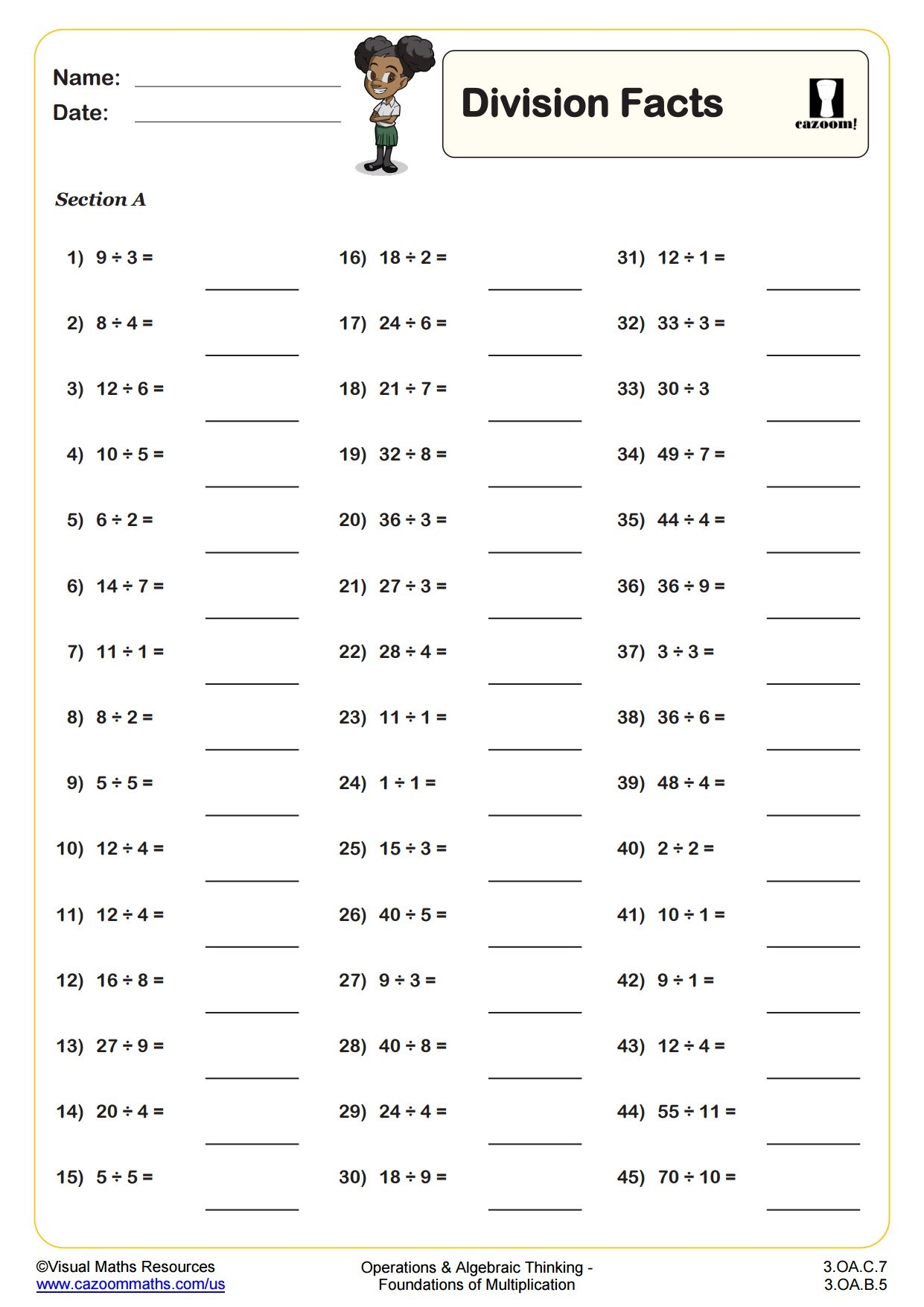 In addition, division math facts worksheets can also help students improve their mental math abilities. By practicing division problems regularly, students can strengthen their mental math skills and become more efficient at solving division equations in their heads. This can be particularly helpful in real-world situations where mental math skills are required to quickly calculate and solve division problems.