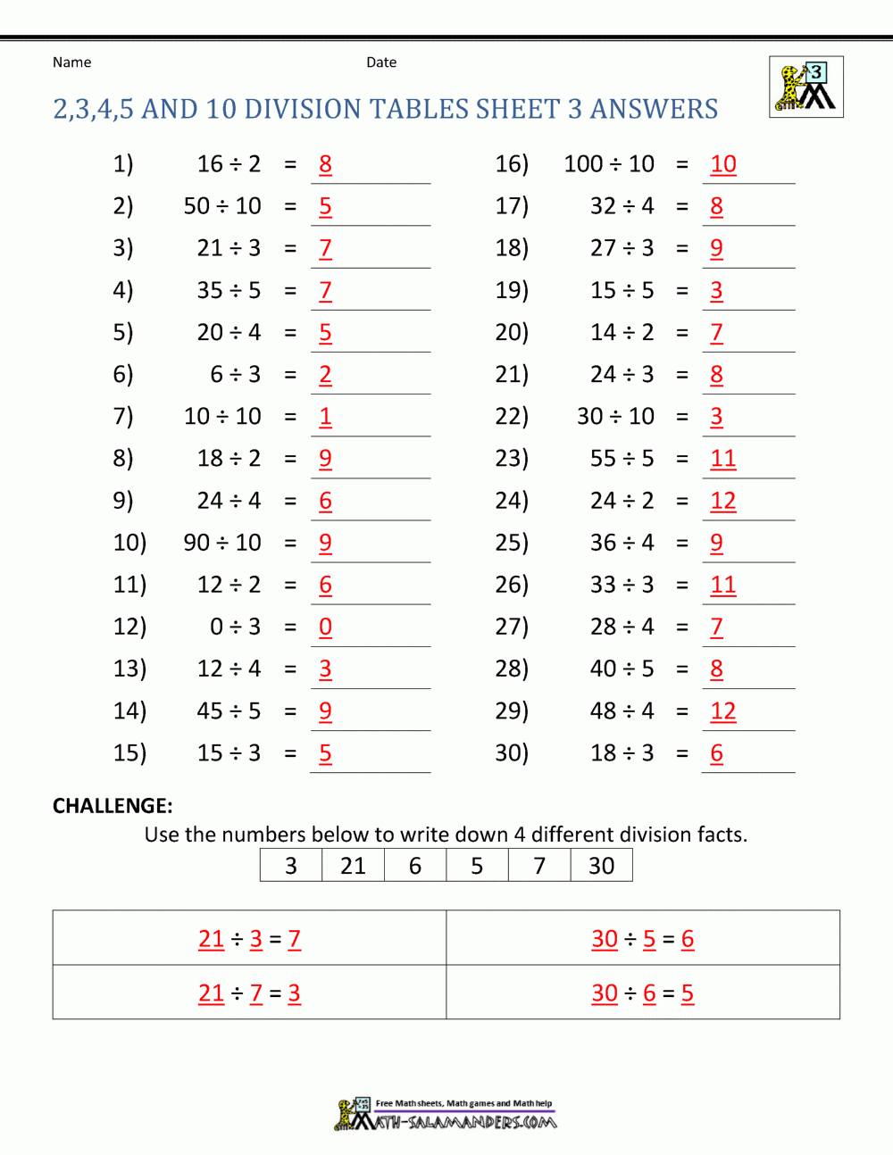 Division math facts worksheets are a helpful tool for students to practice and master their division skills. These worksheets typically include a series of division problems that students must solve, ranging from simple to more complex equations. By regularly practicing with these worksheets, students can improve their division fluency and problem-solving abilities.