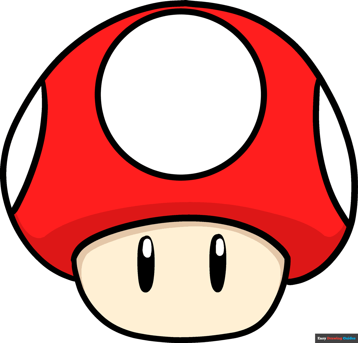 Next, draw two large circles for Mario’s eyes, with smaller circles inside for his pupils. Add eyebrows above his eyes and a smiling mouth underneath his mustache. Finally, draw his iconic hat by creating a half-circle shape on top of his head.