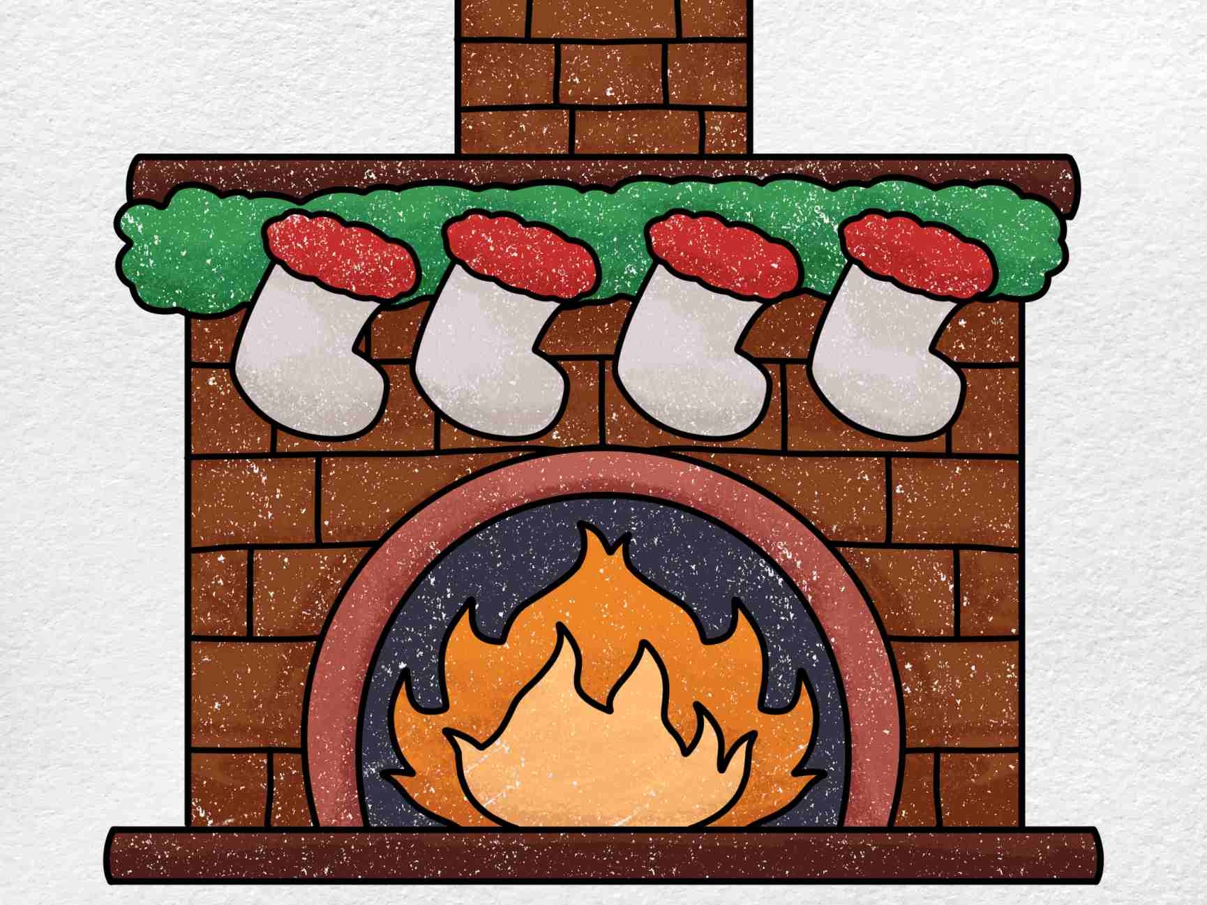 Don’t forget to include the fire itself in your drawing. You can use colored pencils or pastels to create a warm, flickering flame that brings your fireplace drawing to life. Add in shadows and highlights to make the fire look realistic and vibrant, as if it is actually burning in the hearth.