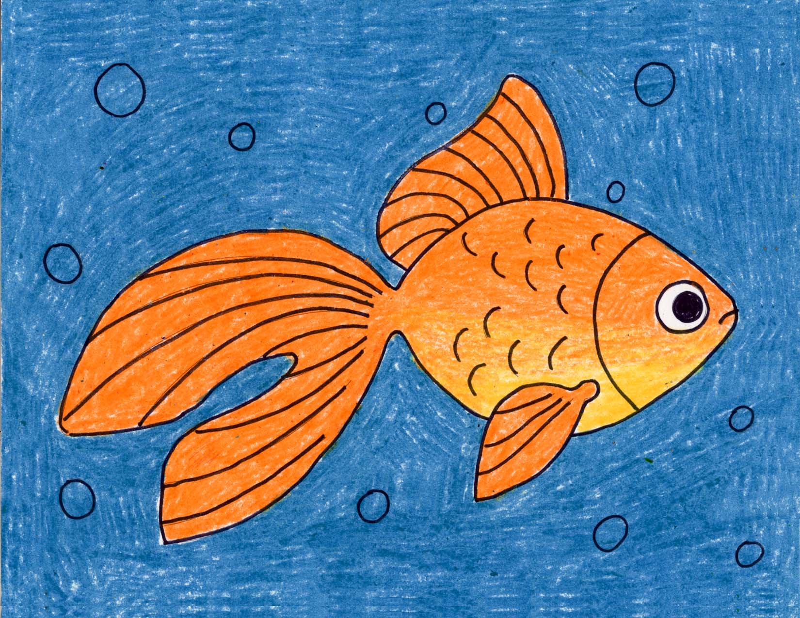 2. Add details to your fish drawing. Draw some wavy lines for the fins, and add scales by drawing small, overlapping ovals or circles all over the body. You can also experiment with different patterns and colors to make your fish drawing more interesting.