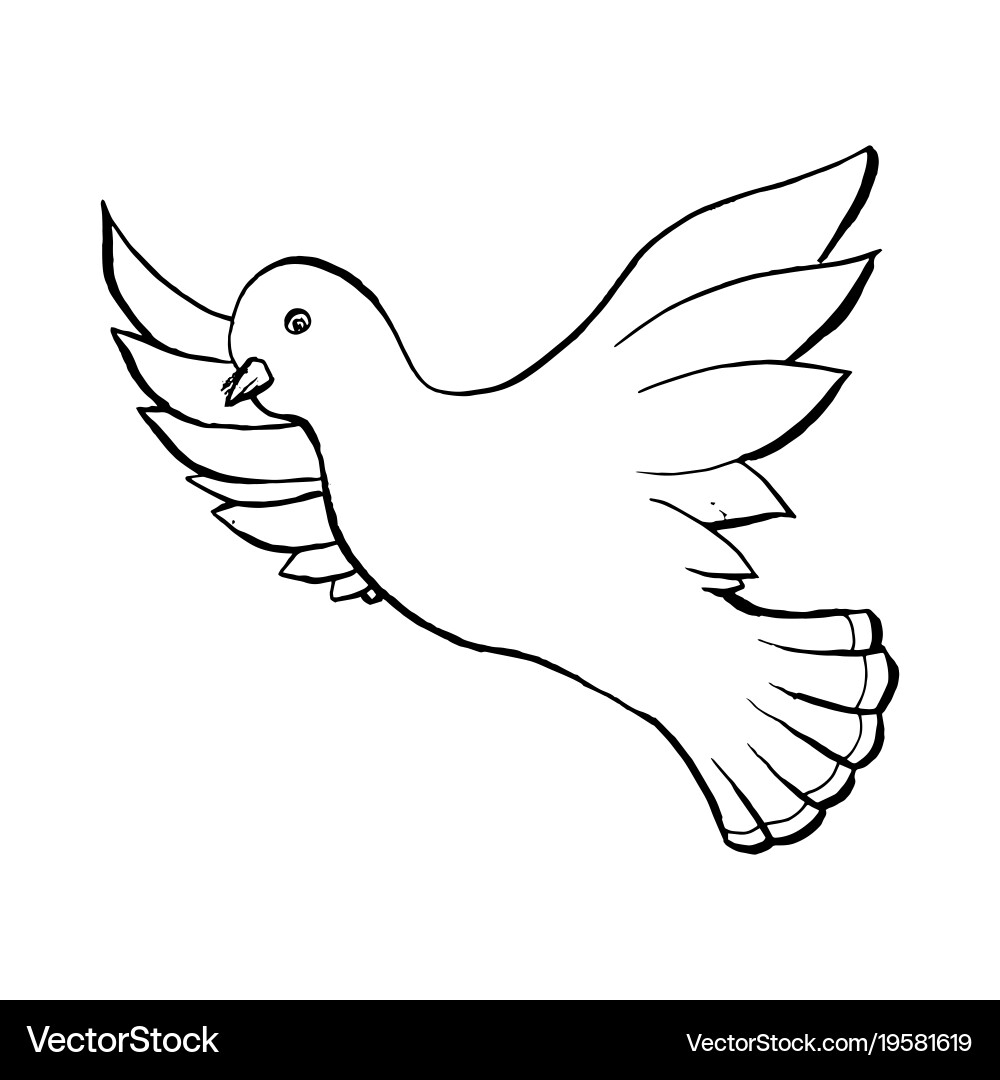 Dove Flying Bird In Sketch Style Outline Vector Image