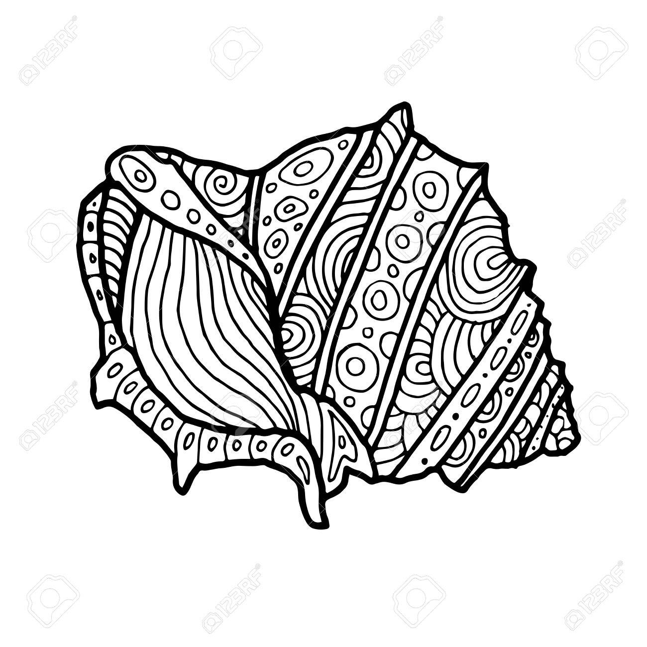 Decorative Zentangle Sea Shell Illustration Outline Drawing