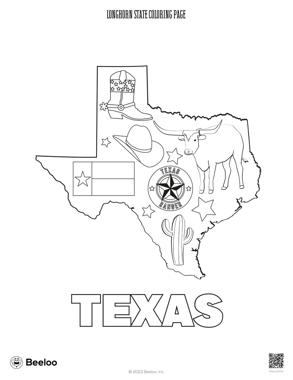Another fun coloring sheet depicts the Alamo, a historic mission and fortress in San Antonio that played a significant role in the Texas Revolution. Kids can color in the iconic building and learn about its importance in Texas history, making for a fun and educational activity.