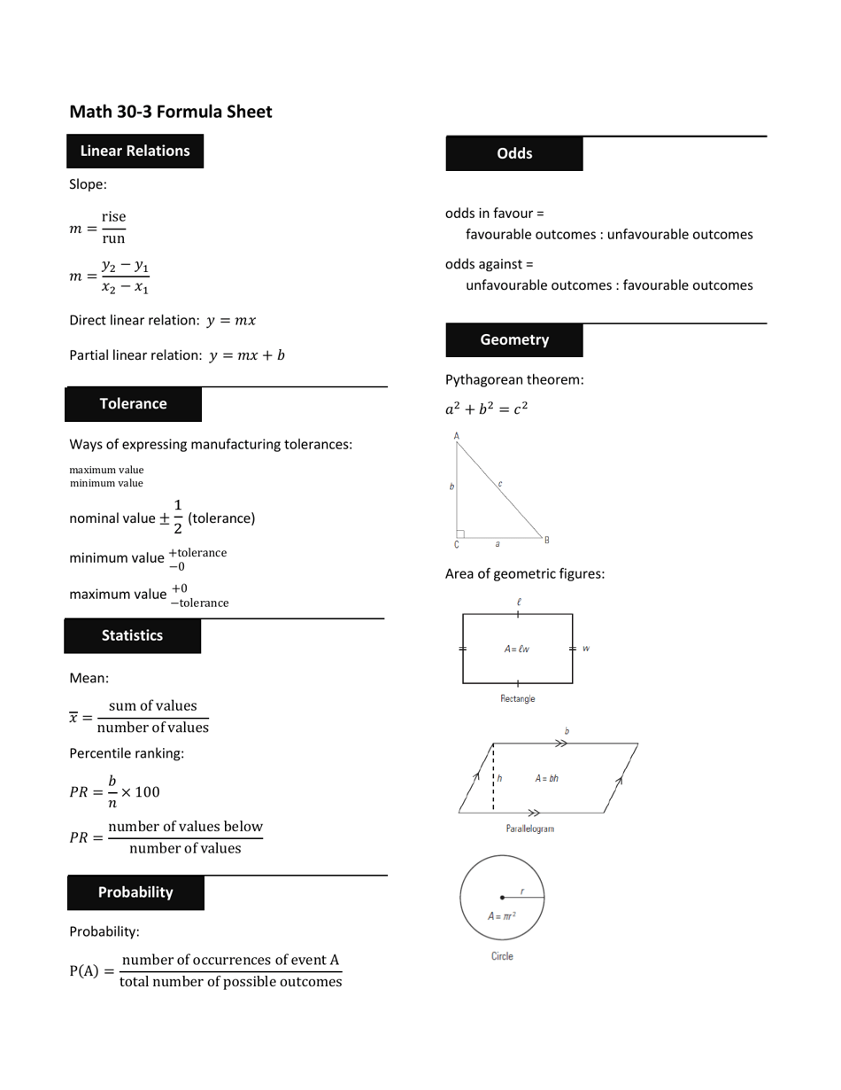 Math 30 3 Formula Sheet Download Printable PDF Templateroller