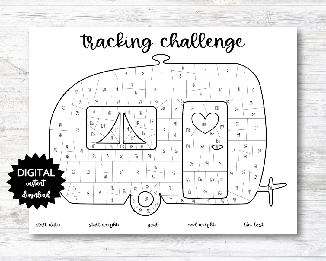 Camping Themed Tracking Challenge Coloring Sheet Habit Tracker Coloring Planner Page 140 Day Challenge PRINTABLE N013 Etsy
