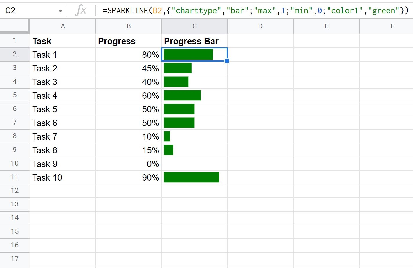 Google Sheets Bar Percentage