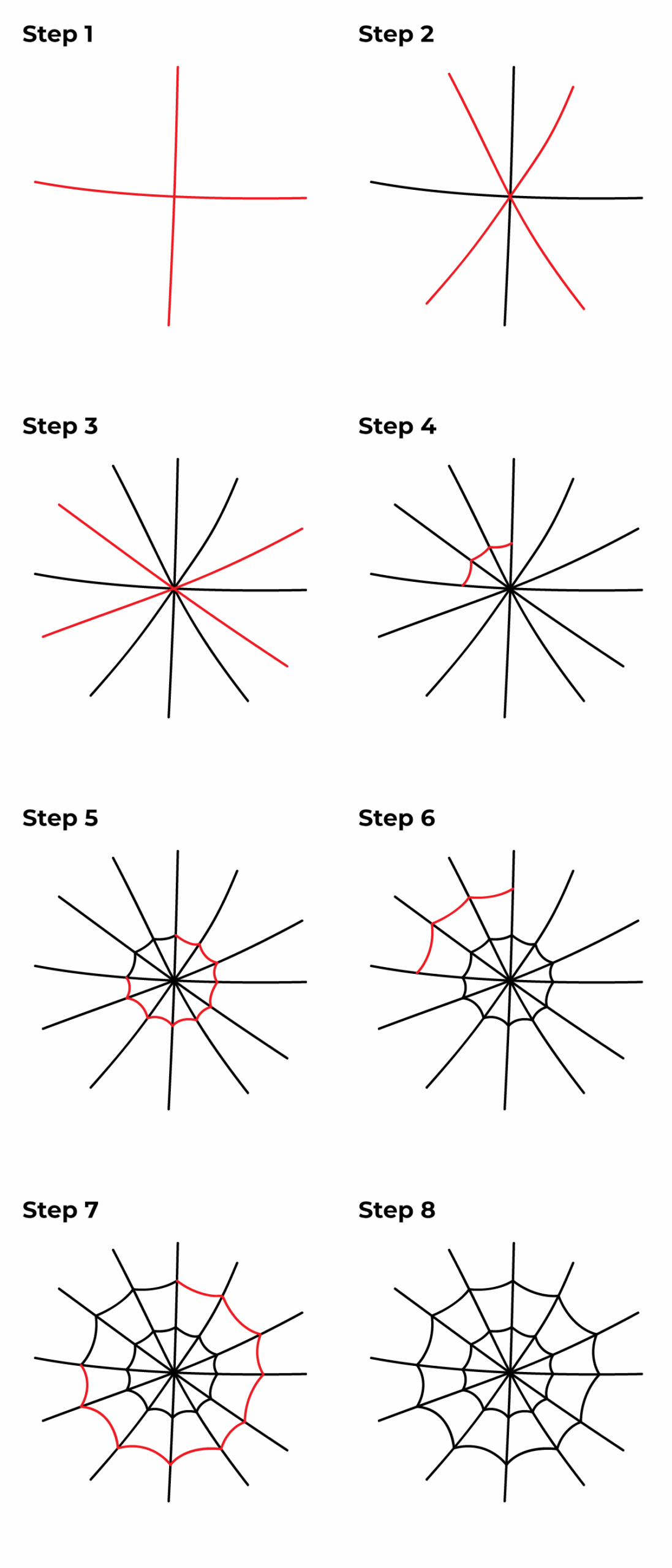 Now that you have your materials ready, follow these steps to draw a spider web: