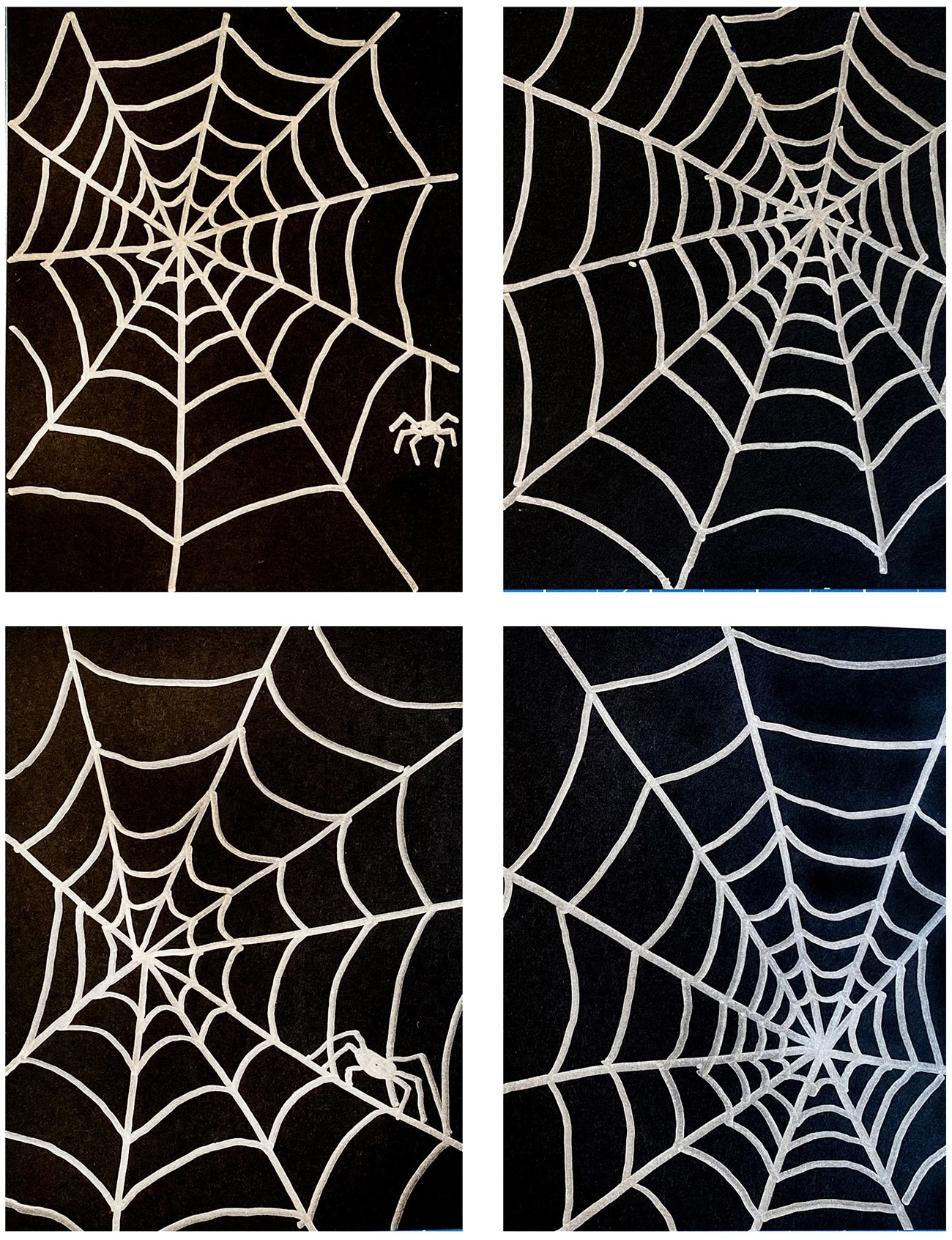 5. To add more detail, use your black pen or marker to darken the lines of the web and make it stand out on the paper.