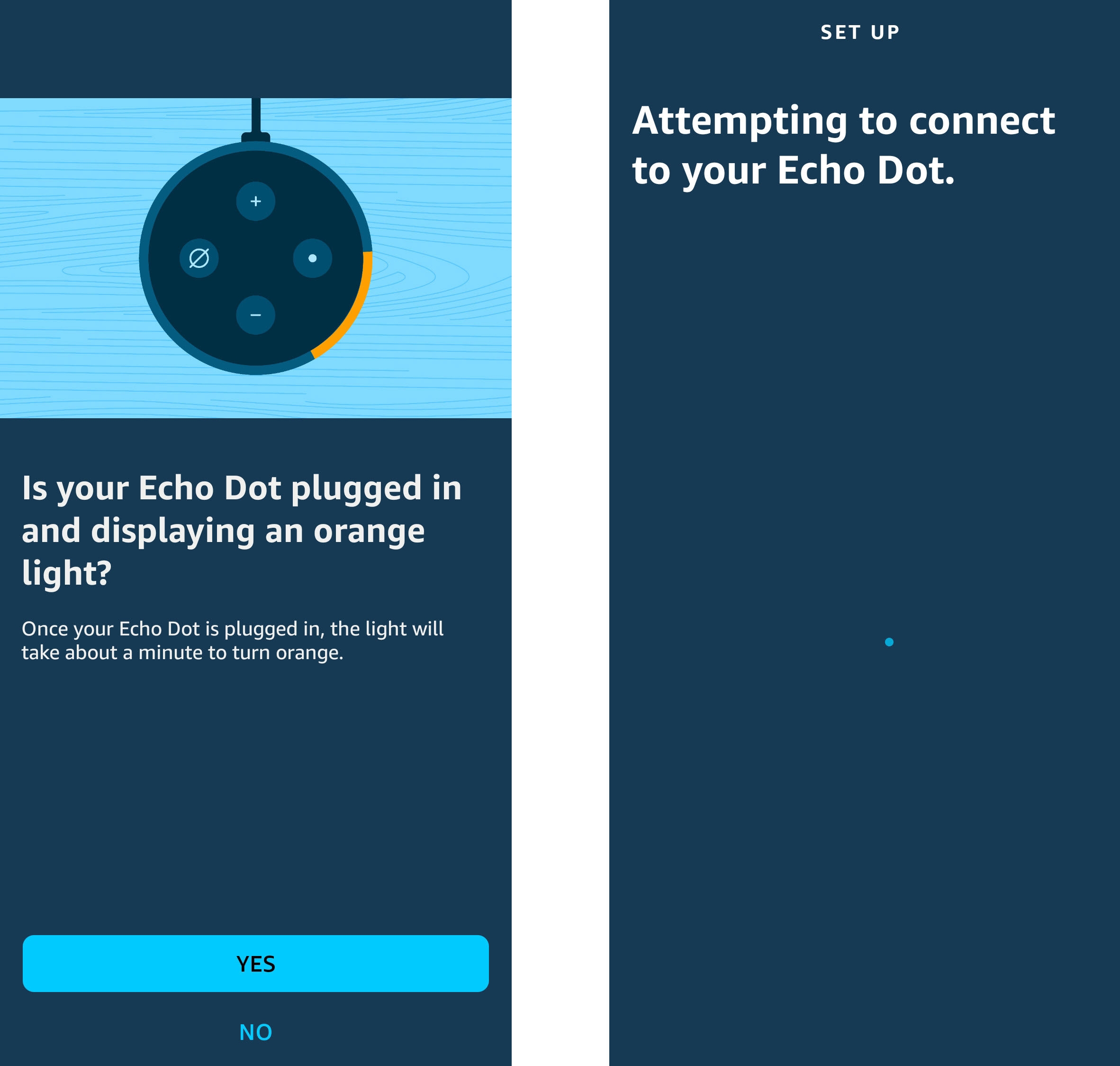 1. Plug in your Echo Dot and wait for the light ring to turn orange. This indicates that the device is in setup mode and ready to be connected to a Wi-Fi network.
