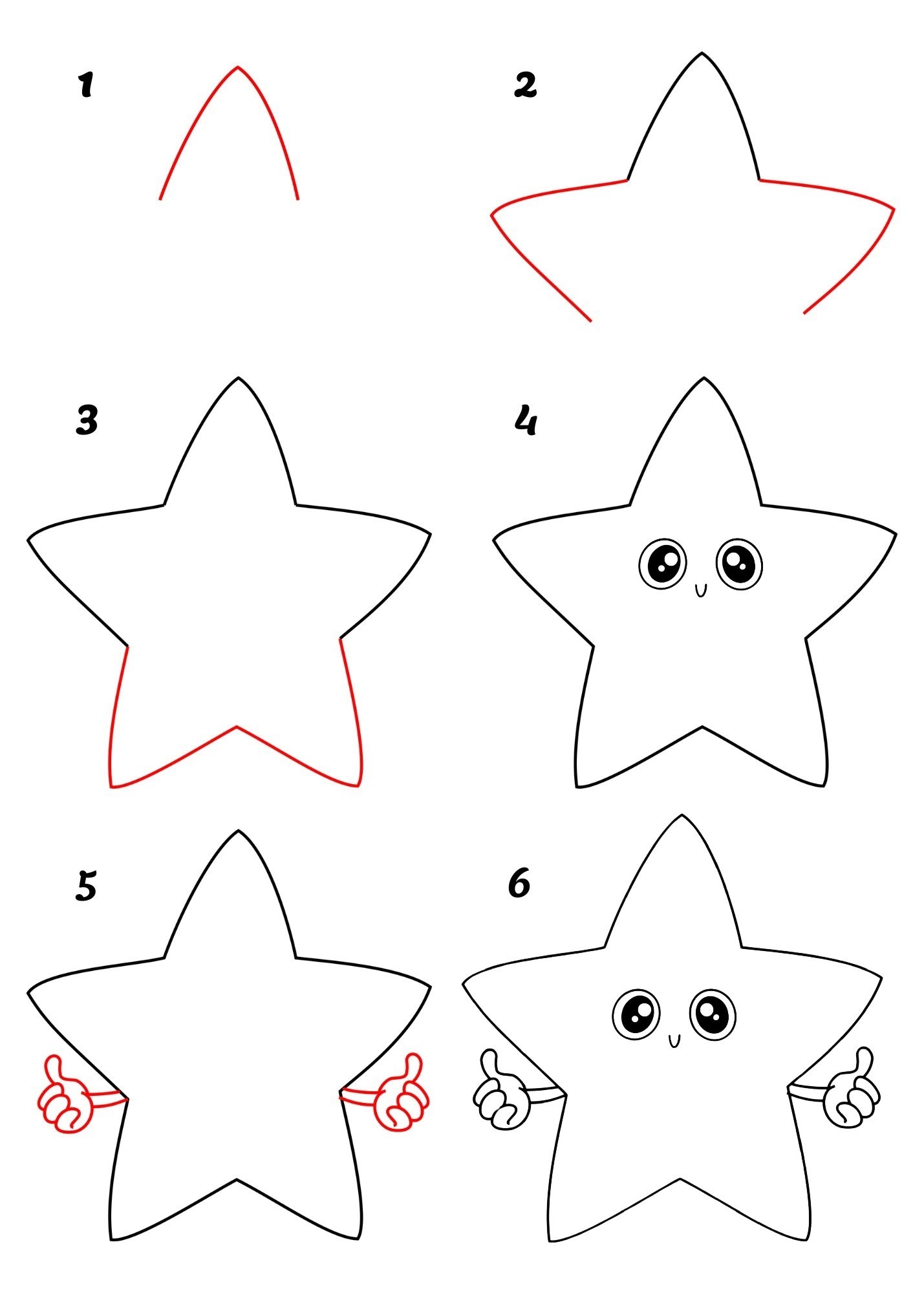 Step 5: Once you have the basic outline of the star, you can go over the lines to make them darker and more pronounced. You can also add details or embellishments to customize your star.