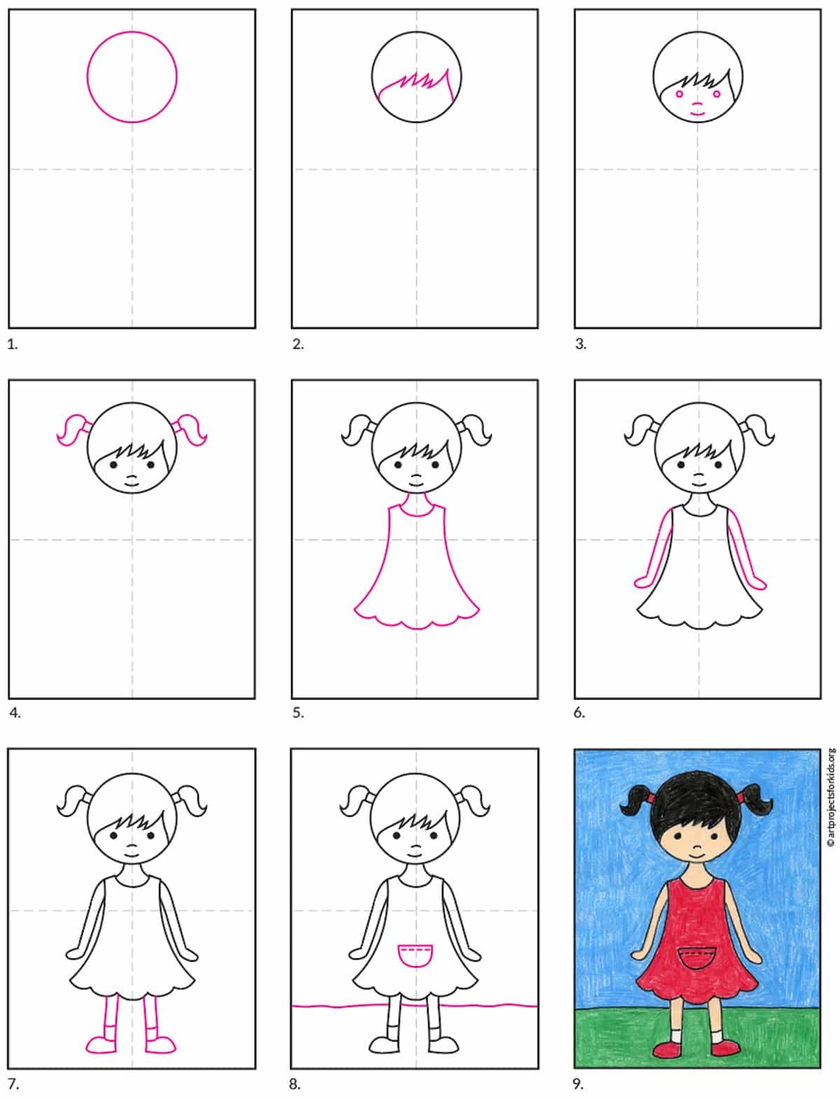 Easy How To Draw A Girl Tutorial Video And Girl Coloring Page