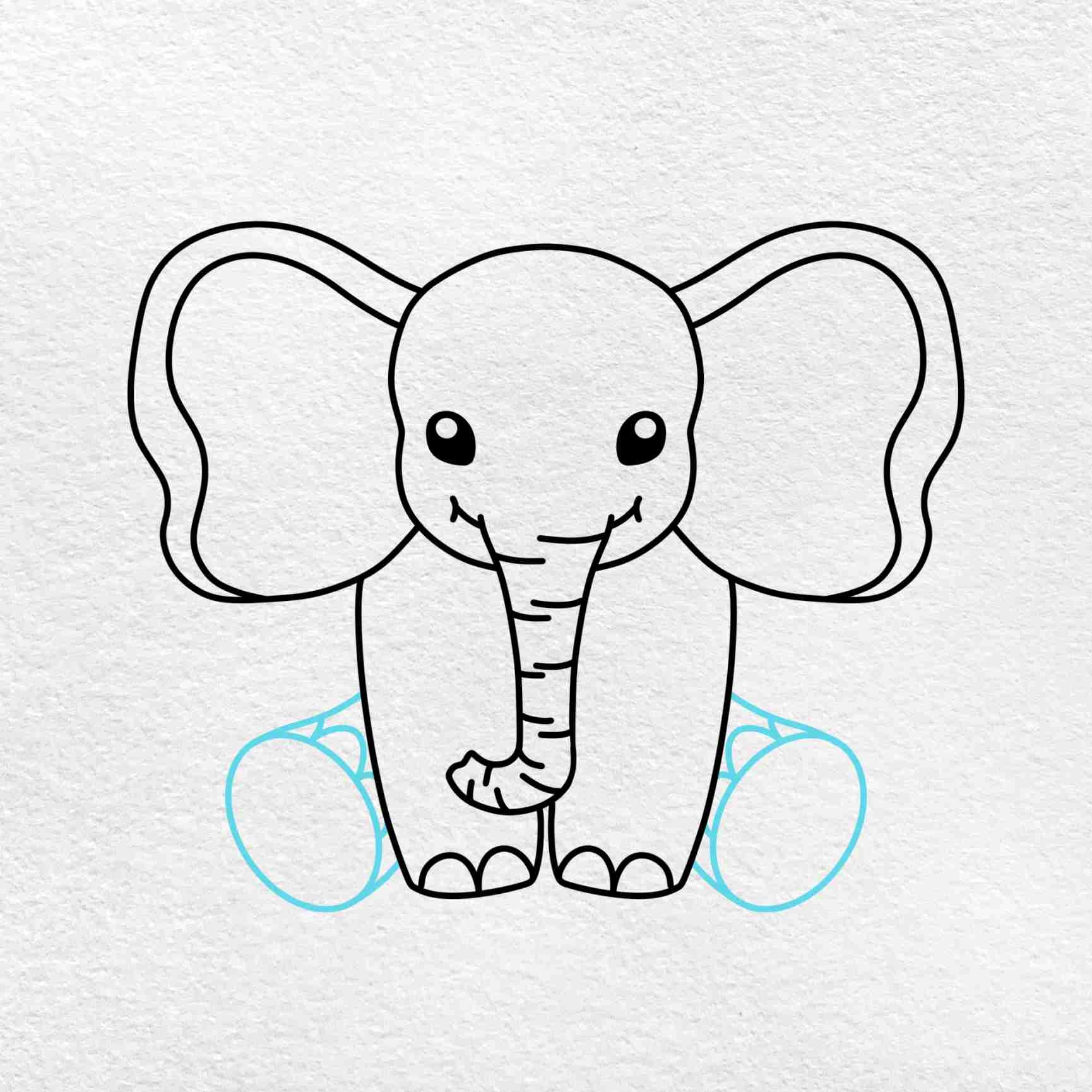 4. For the elephant’s legs, draw four thick, sturdy lines extending from the bottom of the body. Elephants have strong legs to support their massive weight, so make sure to convey that strength in your drawing.