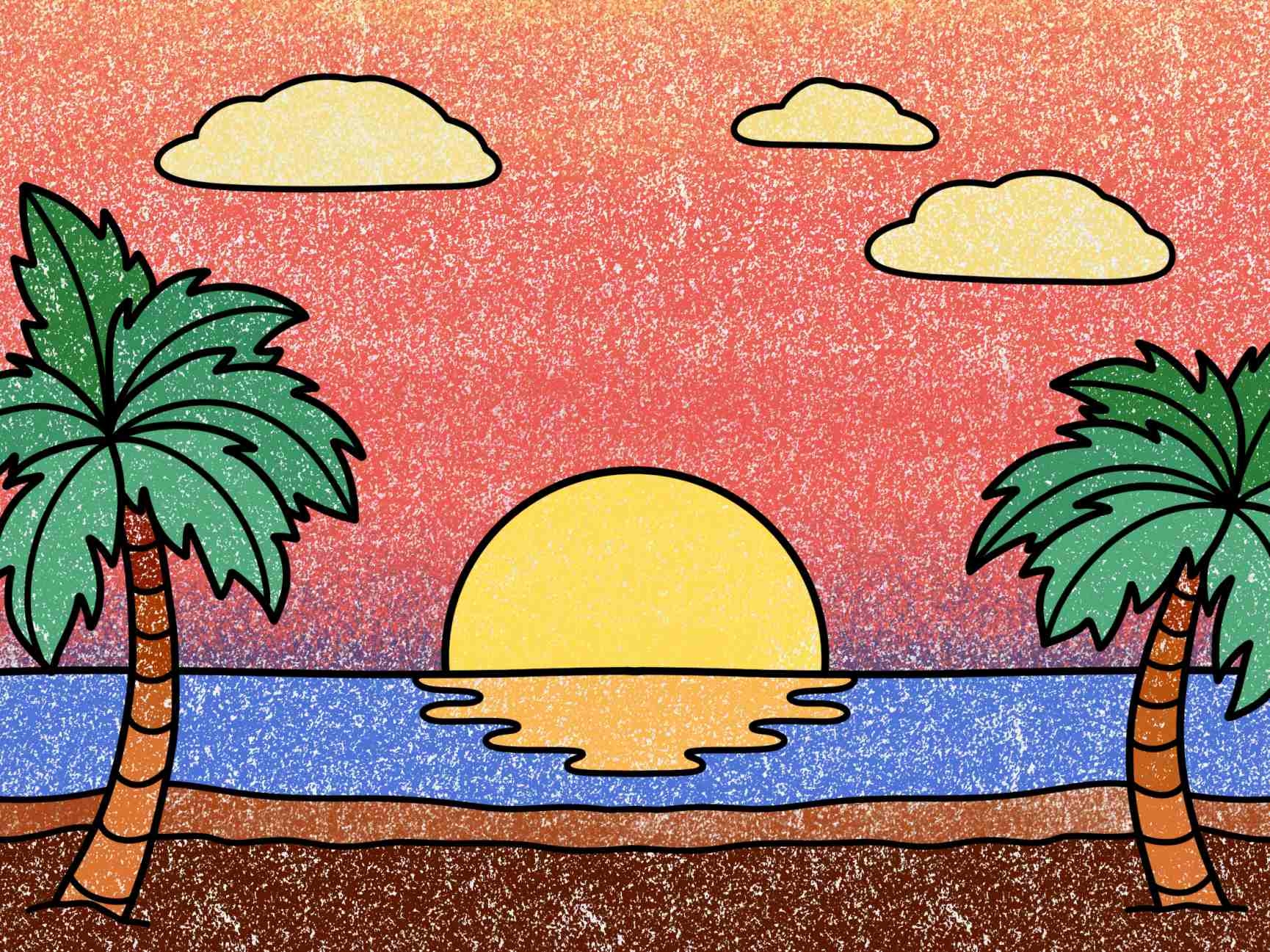To complete your beach drawing, add some color to the sky and water using colored pencils or markers. Blend different shades of blue and white to create a gradient effect in the sky and water. You can also add some warm tones like orange and pink to create a beautiful sunset or sunrise. Don’t forget to add some details like birds flying in the sky or sailboats on the water to bring your beach scene to life.
