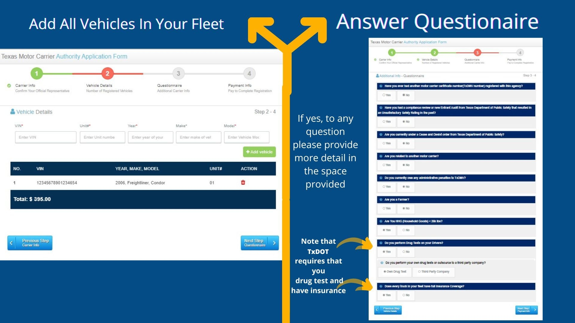 To apply for a DOT number in Texas, you will need to complete an online application through the FMCSA’s website. The application will require you to provide information about your business, including your company’s name, address, and contact information. You will also need to provide details about the vehicles in your fleet, including their make, model, and VIN numbers.