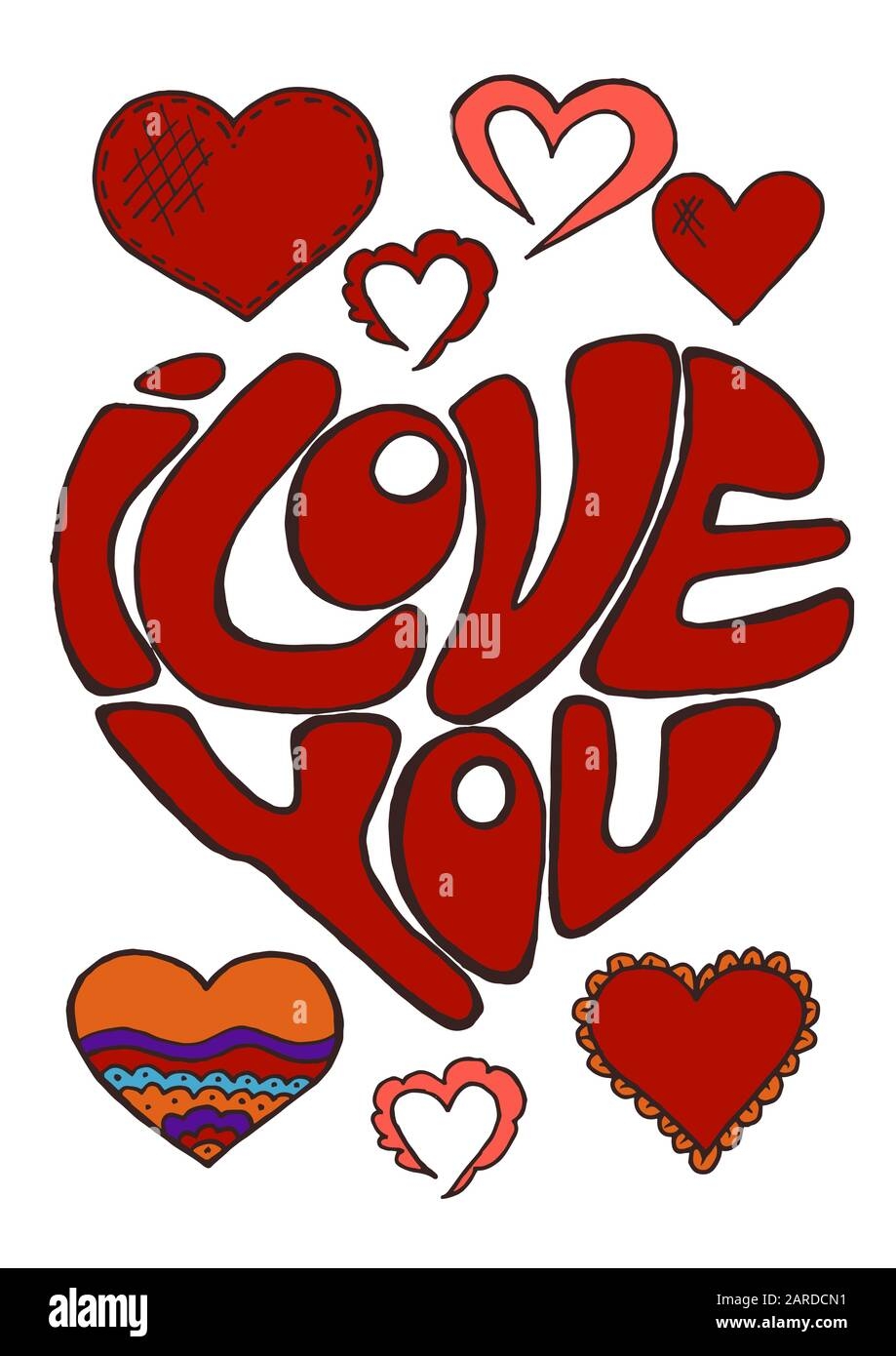Love Concept Stock Vector Illustration Hand Drawn I Love You Lettering Drawing A Heart Inscription Black Lines Isolated On White Background Creative Picture For Your Design Gift Card Poster Print Stock Vector Adobe