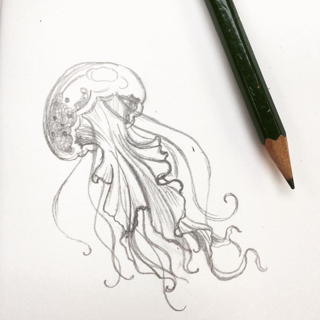 Use light, flowing lines to capture the graceful movement of the jellyfish as it glides through the water. Experiment with different textures and shading techniques to create a sense of depth and dimension in your drawing.