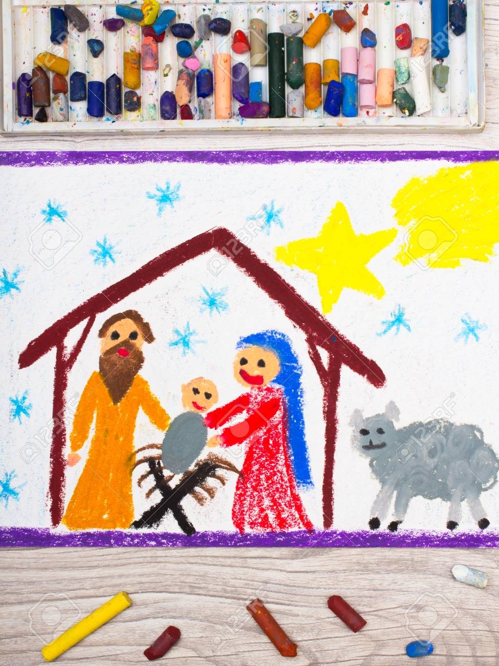 Photo Of Colorful Drawing Nativity Scene Christmas Time Stock Photo Picture And Royalty Free Image Image 92525635
