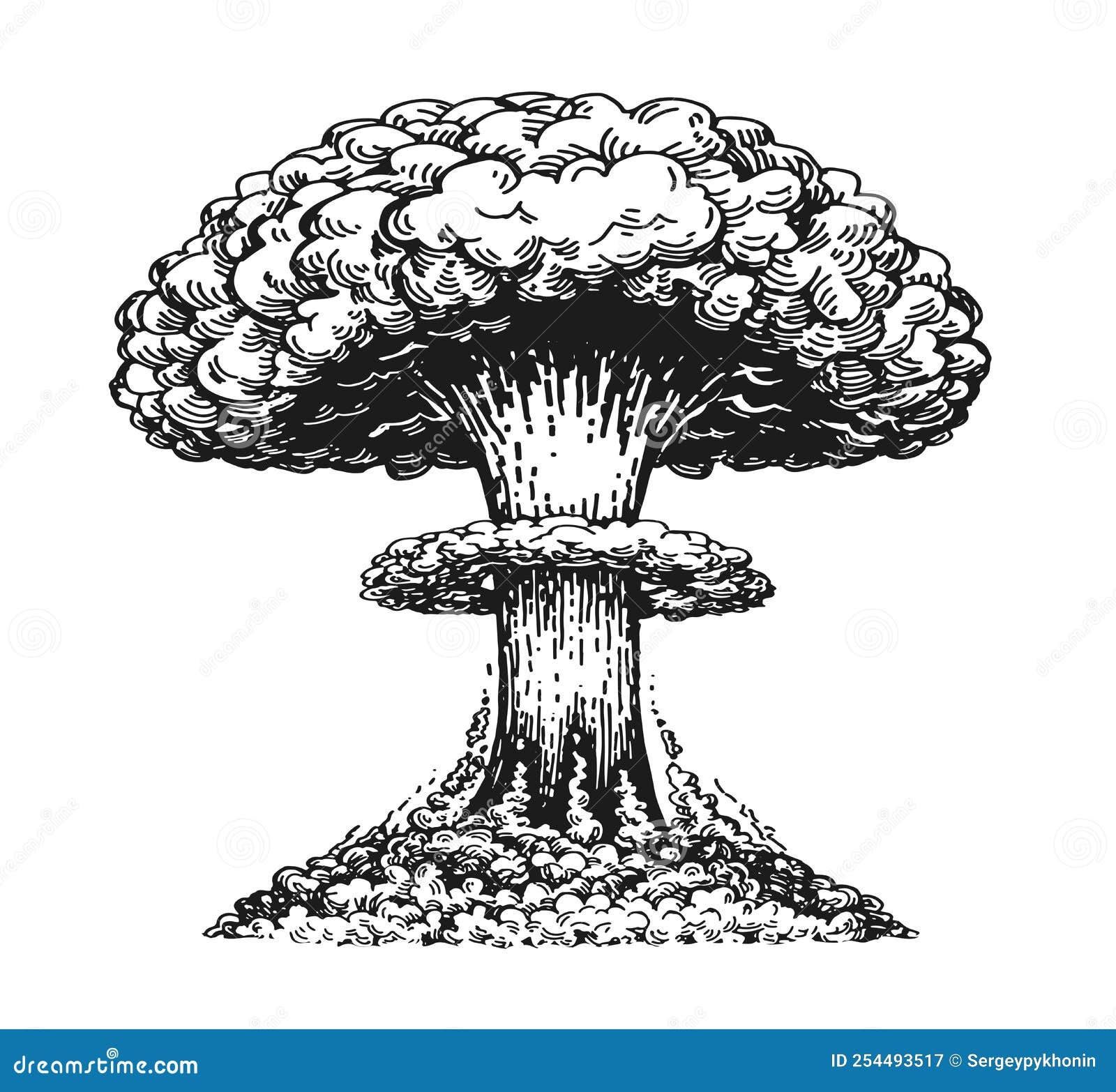 Nuclear Explosion Atomic Bomb Mushroom Cloud Sketch Radiation And Destruction Weapon Vector Illustration Isolated Stock Vector Illustration Of Power Energy 254493517