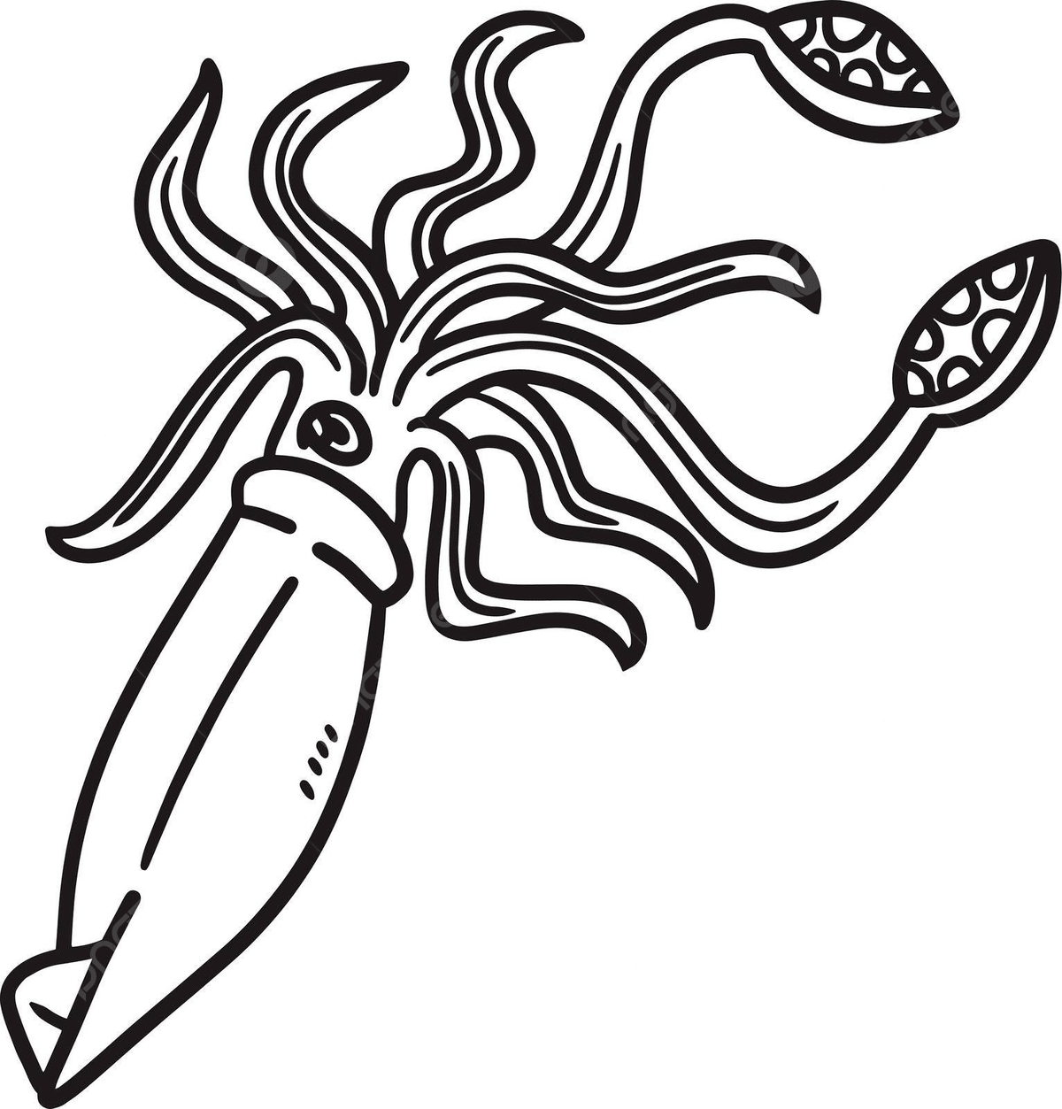 Giant Squid Coloring Page For Kids Ocean Graphic Colouring Page Vector Ocean Drawing Squid Drawing Ring Drawing PNG And Vector With Transparent Background For Free Download