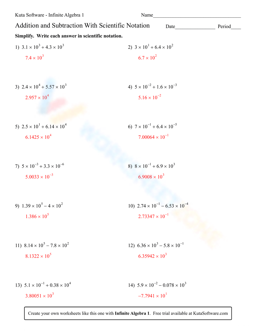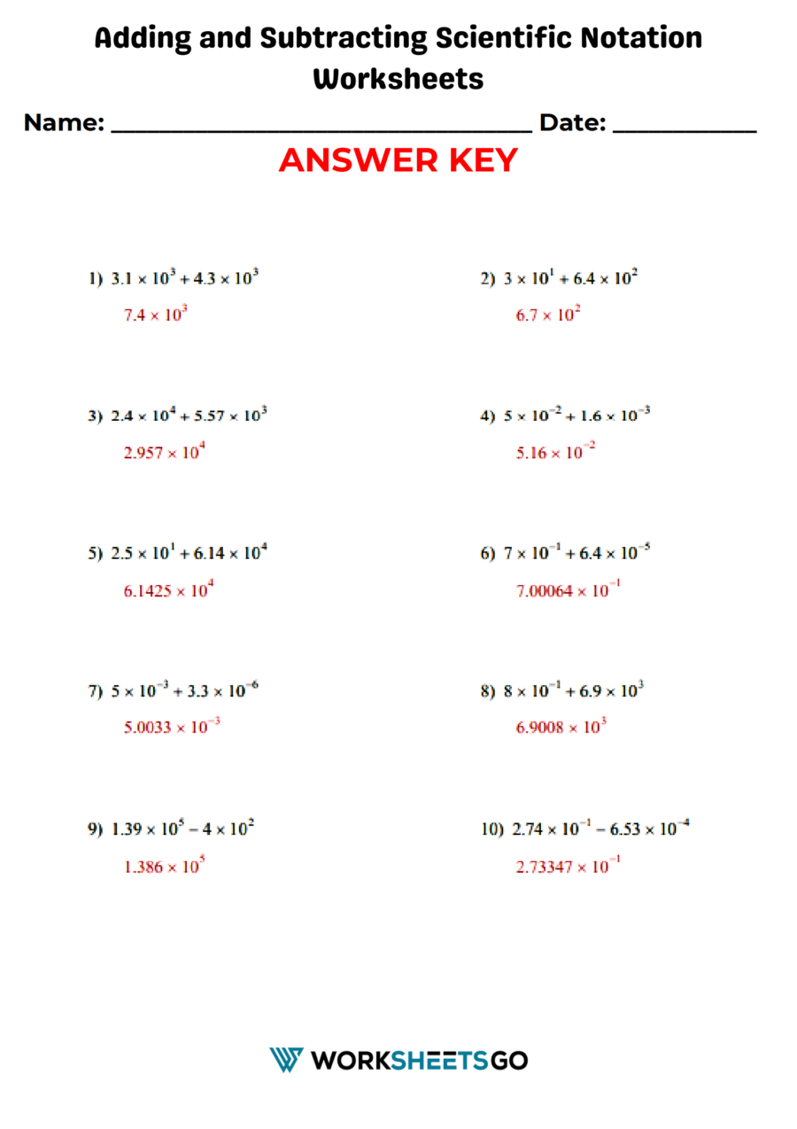 Scientific Notation Addition and Subtraction Worksheet