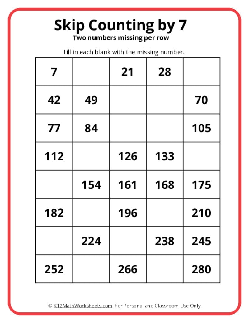 In conclusion, skip counting by 7 is a valuable skill that can improve your mathematical abilities and make calculations easier. Whether you are a student learning multiplication or an adult looking to sharpen your mental math skills, practicing skip counting by 7 can be a beneficial exercise. So, next time you want to challenge yourself mathematically, try skip counting by 7 and see how it can enhance your number sense and arithmetic proficiency.