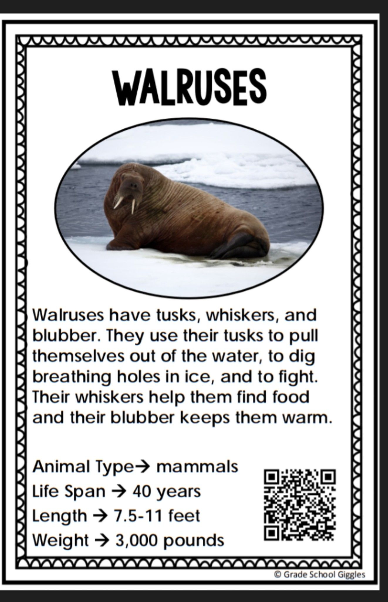 Walrus Facts for Kids Printable