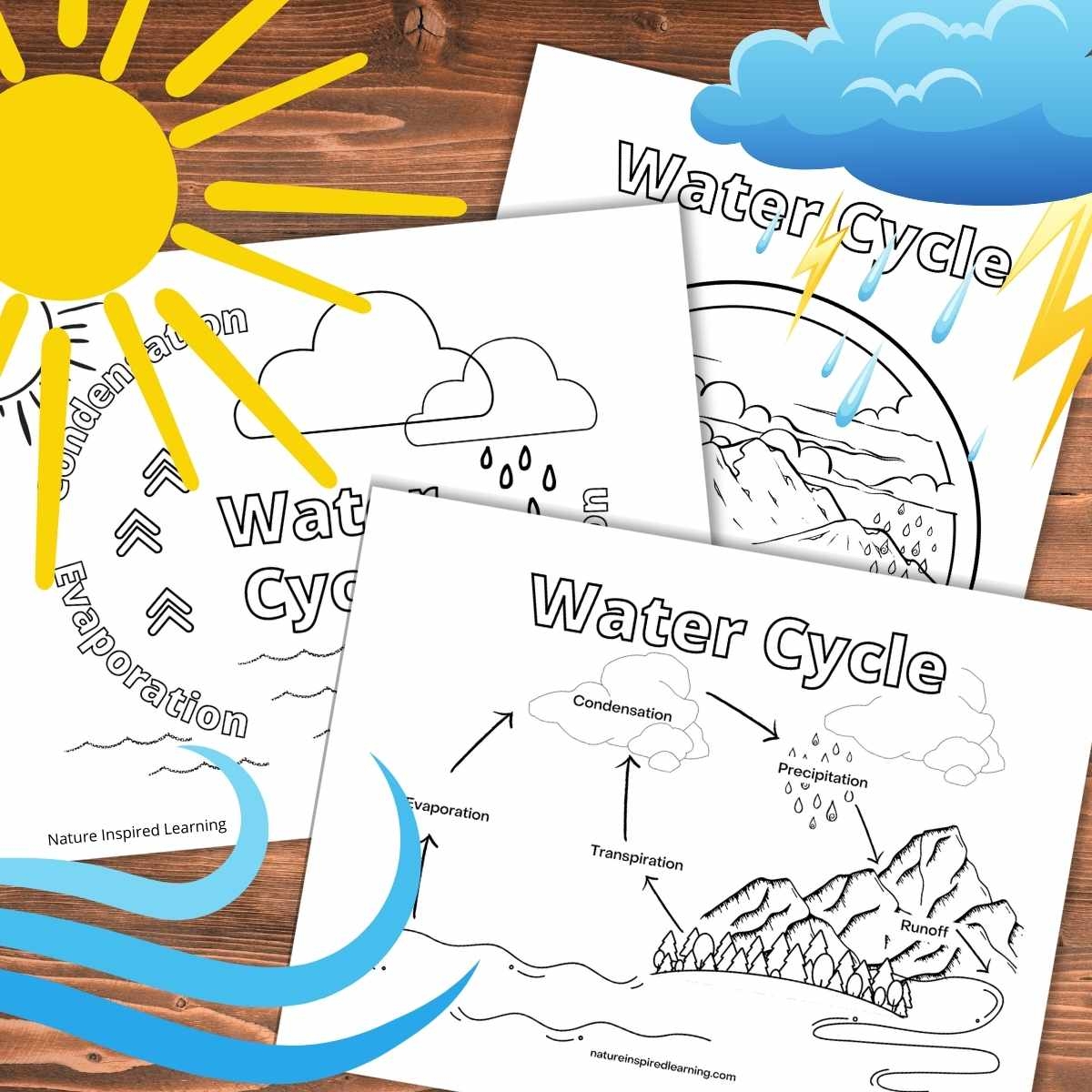 Water cycle coloring sheets typically include images of the sun, clouds, rain, rivers, and oceans to represent the various stages of the water cycle. Children can color these elements and connect them with arrows to show the flow of water through the cycle. They can also label each part, such as evaporation, condensation, precipitation, and collection, to reinforce their understanding of the process.